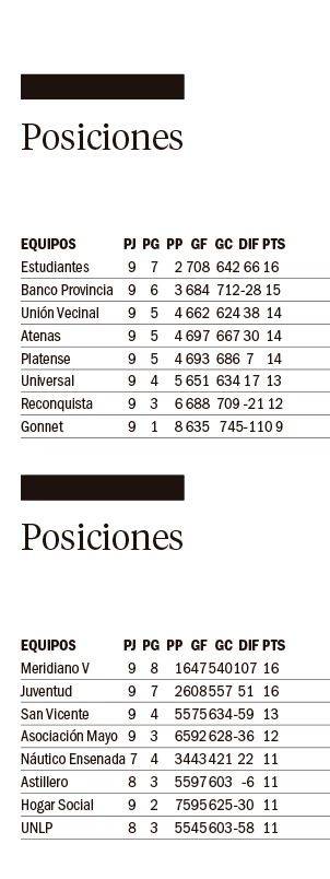 Por otro lado, la décima fecha del Torneo dará inicio el próximo martes con el partido central entre Atenas y Banco Provincia en el Dante Demo. El líder Estudiantes recibe en UNO a Platense. En tanto, Universal en avenida 25 intentará pegar el volantazo ante el golpeado Gonnet. Mientras que en un llamativo duelo de barrio, Reconquista buscará hacer lo propio ante Unión Vecinal.