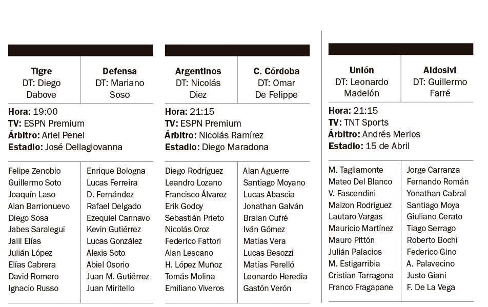 La undécima fecha del Torneo Clausura se pondrá en marcha hoy, en lo que será una jornada que contará con tres partidos: Tigre vs. Defensa y Justicia; Unión vs. Aldosivi y Argentinos Juniors vs. Central Córdoba de Santiago del Estero.