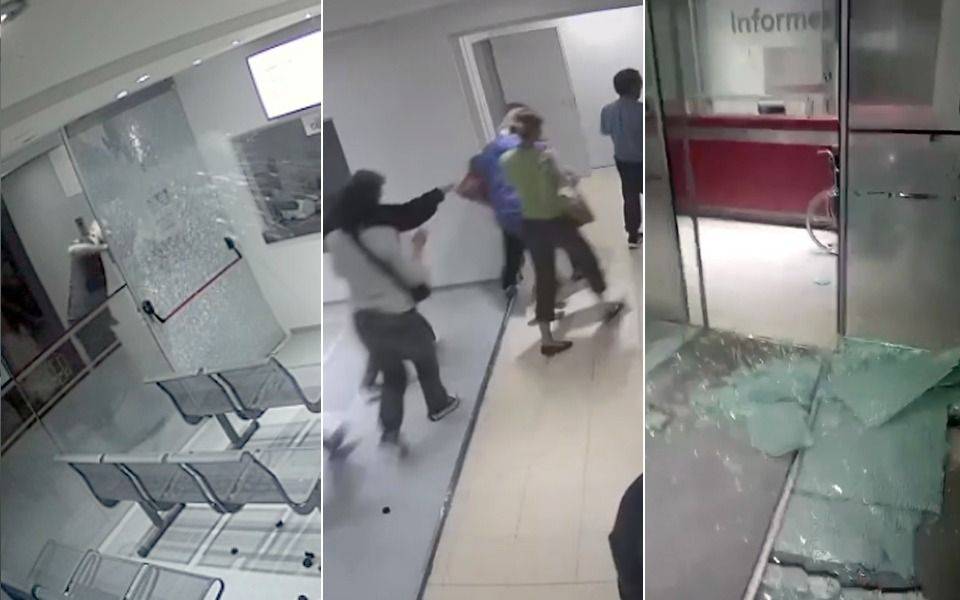 El episodio quedó registrado por las cámaras de seguridad de la clínica, que captaron cómo el sujeto golpeó repetidamente las ventanas y las puertas de acceso con una barra metálica.