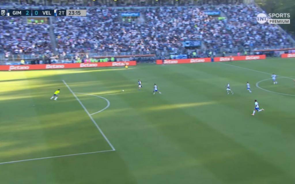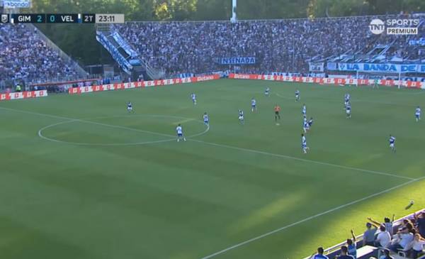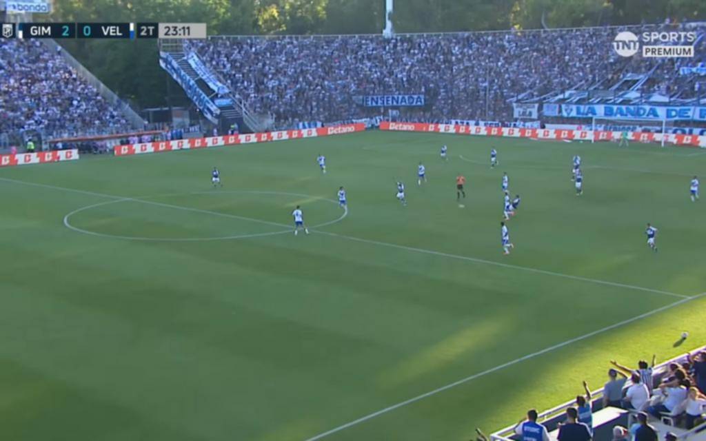 1 Visión de juego. El pase milimétrico de Piedrahita que rompe la defensa de vélez. ¡Acá empieza la magia del gol de Gimnasia! Una contra letal.