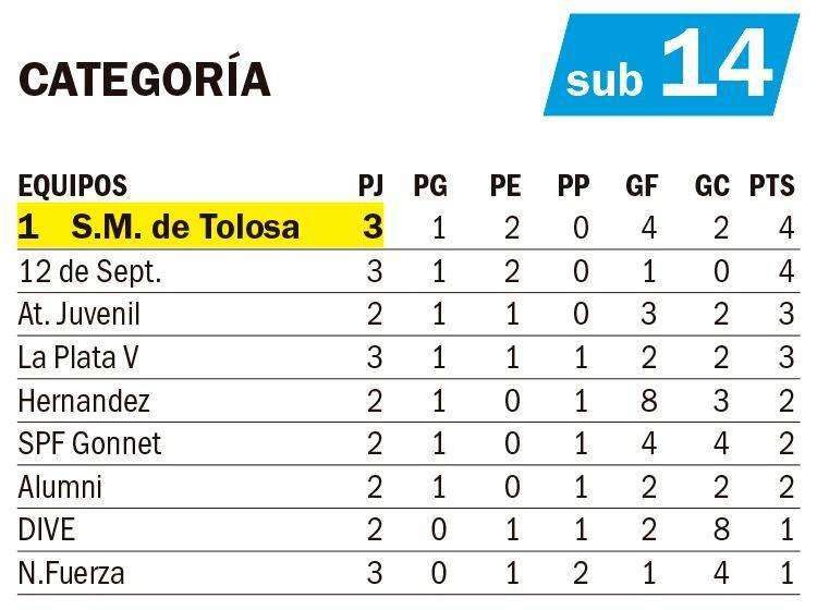 Sub 14: Alumni de Los Hornos 2, José Hernández 0 y 12 de Septiembre 1, Ateneo Juvenil de Ensenada 2.