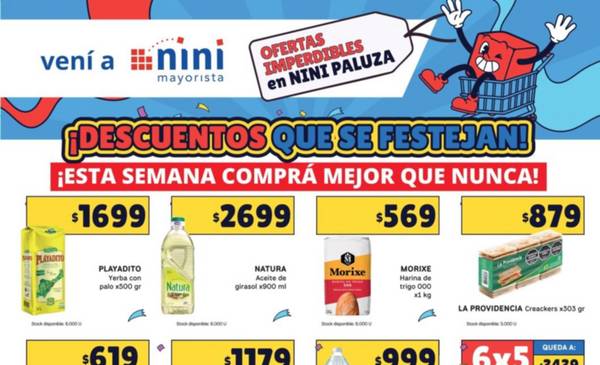 Nini (25 y 520) te espera para aprovechar todas sus ofertas y promociones en diversos productos y llevarte todo lo que necesitás. De viernes a domingo vas a encontrar precios mayoristas y grandes descuentos. Además en NINI vas a ahorrar todos los días.