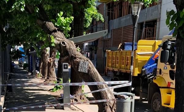 Un añoso árbol cayó contra una vereda en la calle Gaboto y Garibaldi en las inmediaciones de la estación de Quilmes.