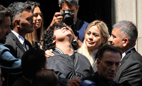 Dieguito Fernando, hijo de Maradona, Verónica Ojeda y Mario Baudry. Los 3 asistieron al final del jury / AFP