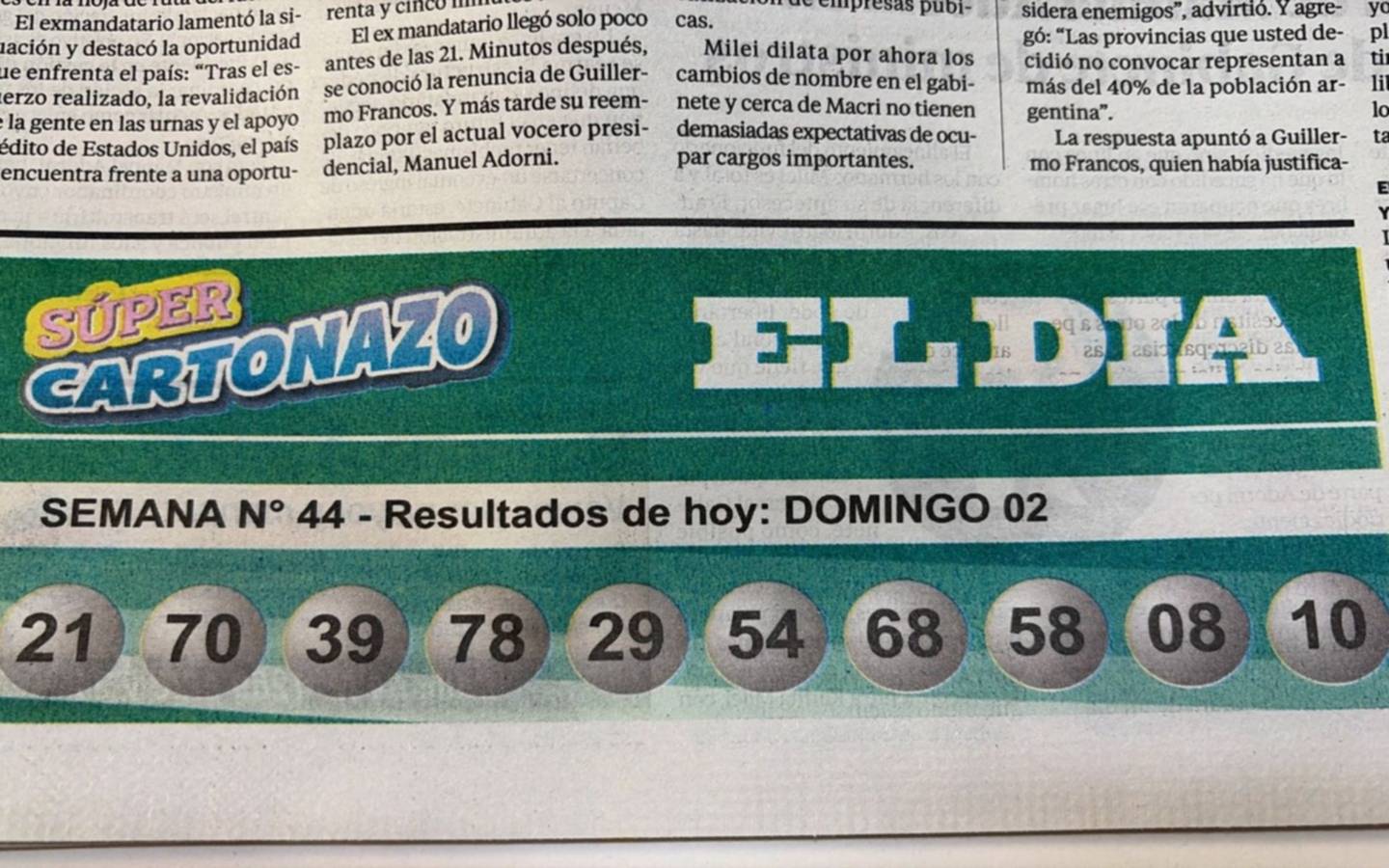 La nueva ronda del Súper Cartonazo ya empezó a jugarse con la entrega del cartón, gratis con la edición impresa de EL DIA. Esta semana quedó vacante y el premio ya es de $8.000.000.