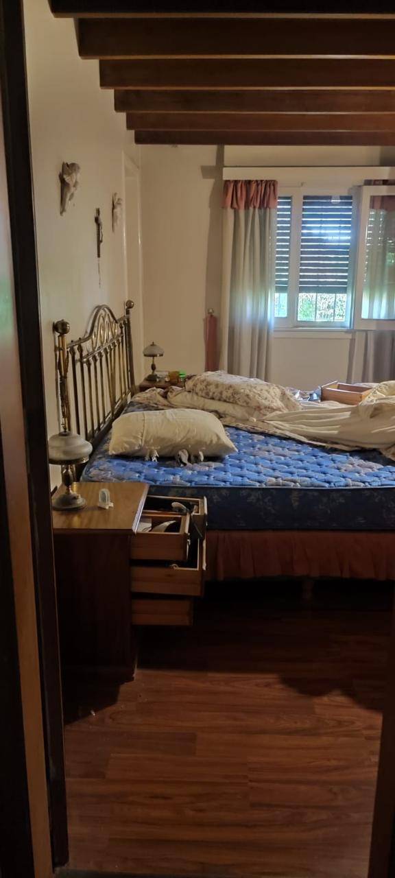En una de esas imágenes puede verse la puerta trasera de acceso, un modelo antiguo de postigo, completamente abierta pero sin daños visibles. Según el parte oficial del primer procedimiento, esa misma puerta fue hallada sin traba, lo que refuerza la posibilidad de que quien ingresó lo hizo sin forzar nada. Lo mismo ocurrió con el portón frontal de madera: no estaba violentado, sino apoyado, sin la traba colocada. Para los investigadores, este punto resulta central porque conecta con la línea que hoy aparece como la más consistente: la presencia de sujetos que, dos días antes del crimen, fueron vistos por vecinos realizando supuestas tareas de poda en el sector del jardín y la ligustrina.