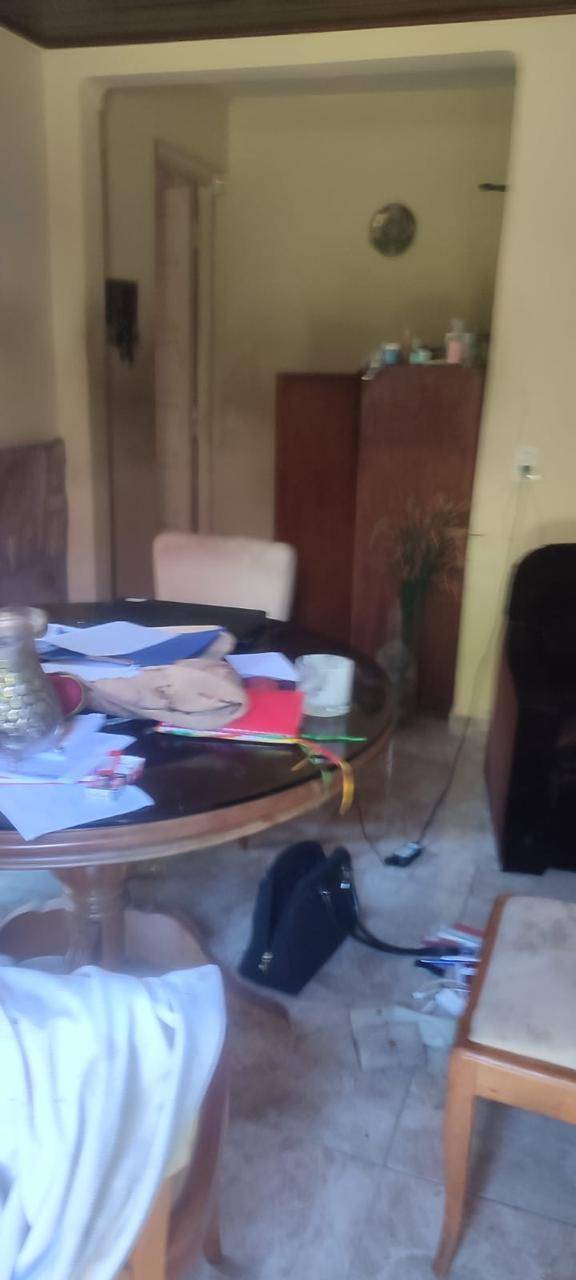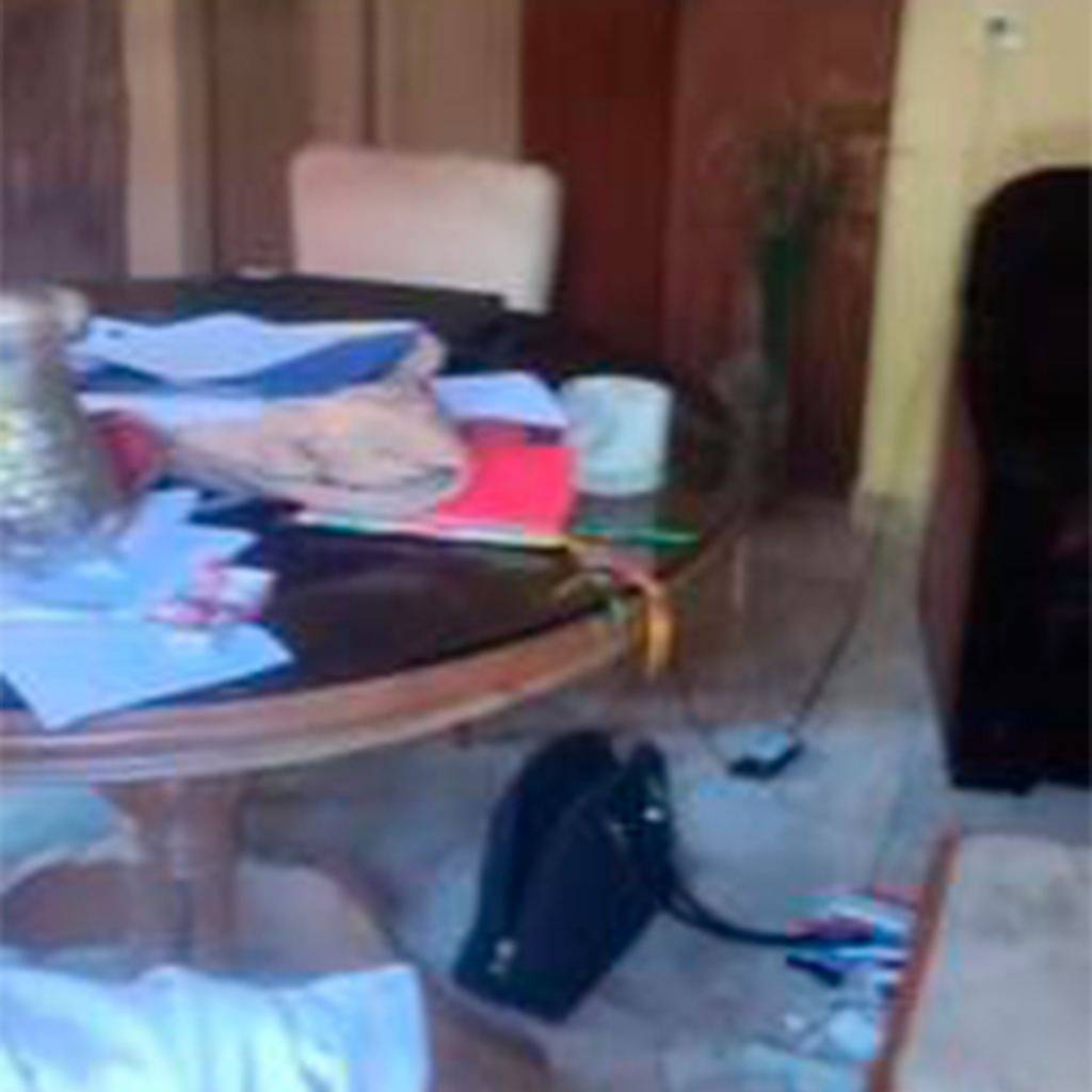 La mesa redonda cubierta de objetos caídos, reflejando el caos con el que fue encontrada la vivienda / EL DIA