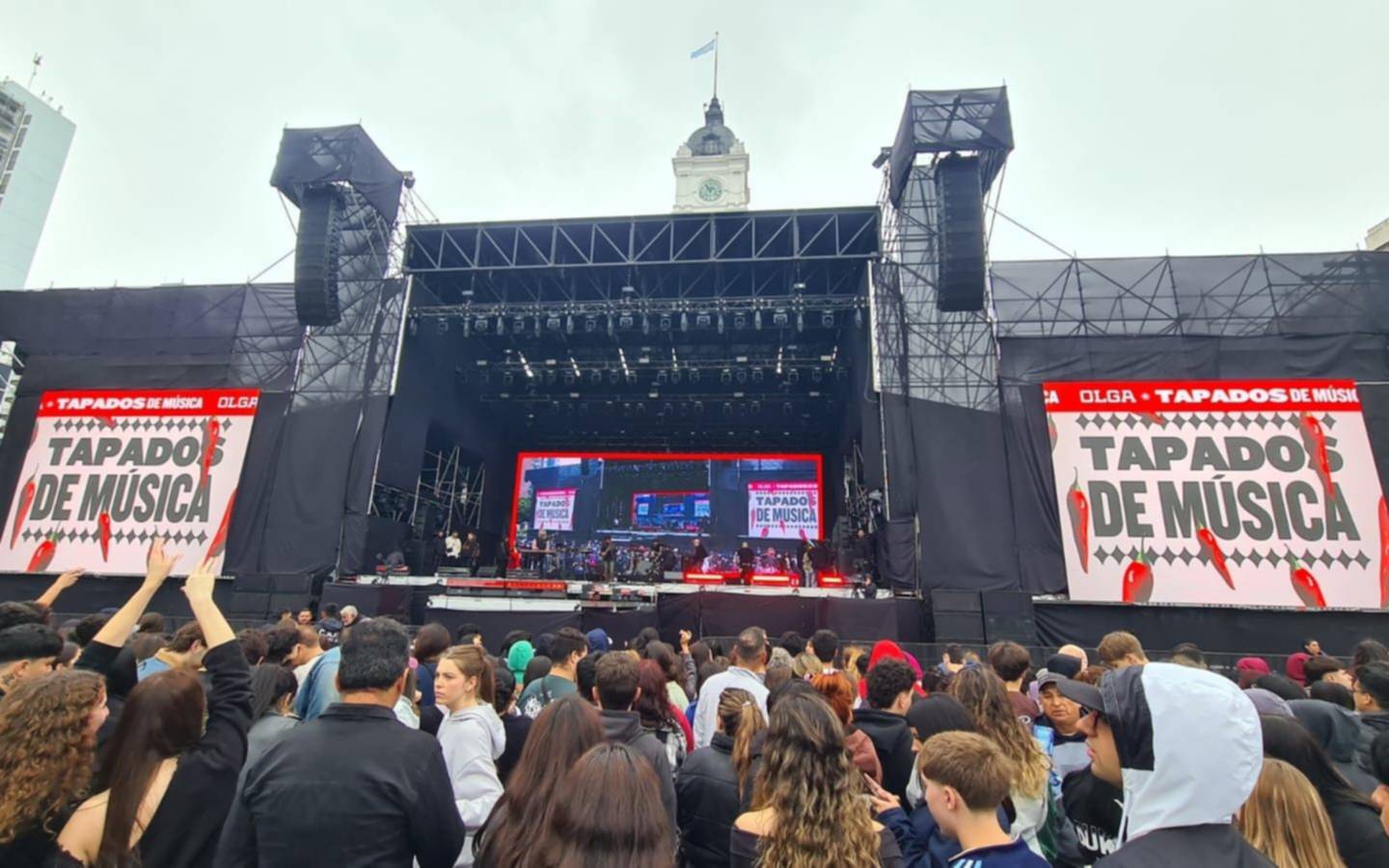 Más temprano, desde el programa "Soñé que Volaba", el conductor Migue Granados anunciaba que "por una cuestión técnica" el evento se retrasaba una hora, por lo que comenzó a las 13.10. Los conductores comenzaron destacando el imponente escenario montado en las puertas de la municipalidad, con la Catedral de frente. "Hasta las 18 o 19, lo que dé", dijeron sobre hasta cuándo se extenderá el evento.