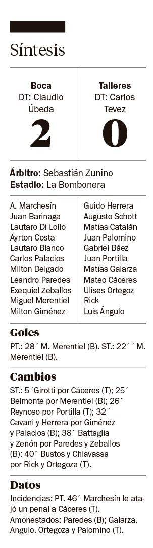 A partir de ahí, se le hizo todo más fácil al Xeneize, ya que Talleres sintió el impacto más allá de contar con un cabezazo de Rick. Boca encontró espacios que antes no tuvo, pero falló en la definición para ampliar más su ventaja.
