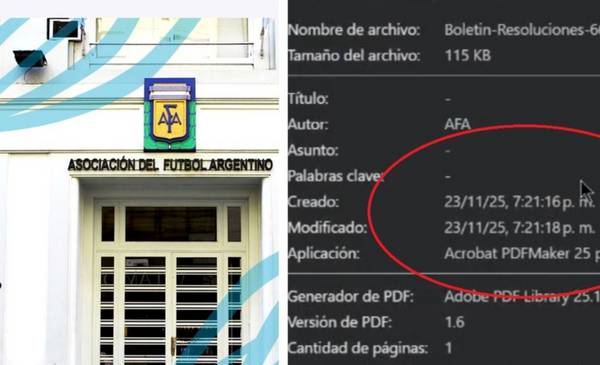 Se trata del documento en formato PDF que en teoría tenía fecha del 12/2/2025 pero un simple estudio informático comprueba que fue publicado la misma tarde que se jugó el partido. Es más, la versión disponible tiene un software que se lanzó al mercado a mediados de año: es decir que en febrero no existía. ¿Se incurrió en un delito informático? Esa sería la clave del informe que preparan los abogados albirrojos.