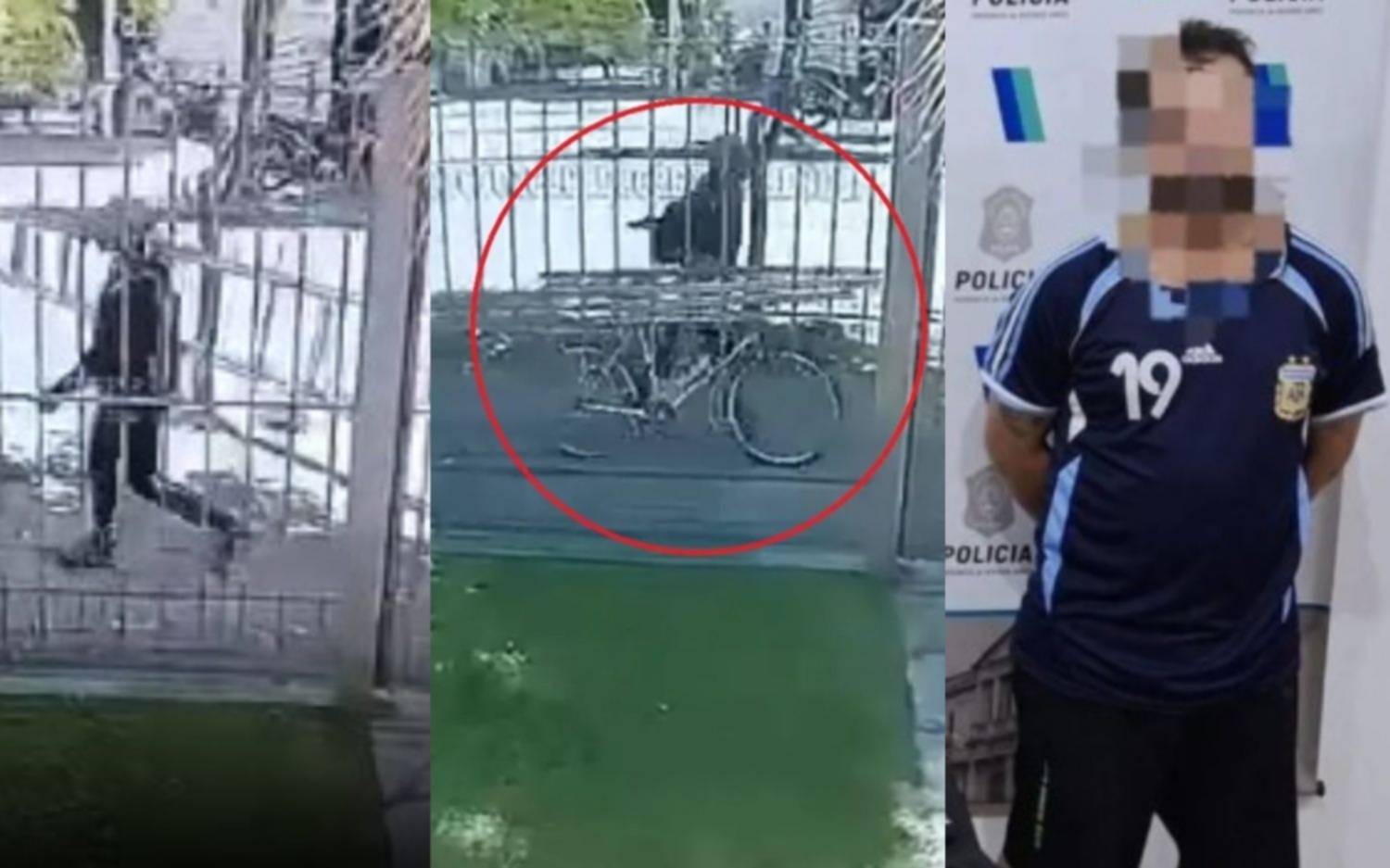 Minutos después, otra cámara registra la retirada. Esta vez el sospechoso aparece montado en una bicicleta, que empuja con rapidez mientras lleva una mochila oscura colgada de un hombro. Su paso es apurado, casi ansioso, y contrasta con la calma con la que llegó. Esa transición —del ingreso sigiloso a una fuga improvisada— se convirtió en una de las pistas más sólidas para los investigadores, que analizaron cuadro por cuadro los movimientos del hombre.