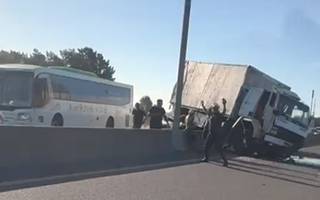 VIDEO.- Impactante accidente en la Autopista La Plata: un camión se cruzó de carril y hay demoras