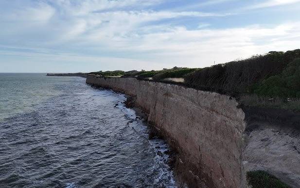 La escalera conduce desde una plataforma elevada de hormigón hacia la playa, atravesando el acantilado. Pero según vecinos y quienes hicieron el video, la estructura lleva tiempo sufriendo los efectos de la erosión, lo que habría dejado en condiciones precarias tanto la plataforma como los descansos intermedios.
