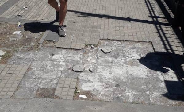 Reclamos de peatones por las veredas destruidas en la cuadra de 47 entre 6 y 7