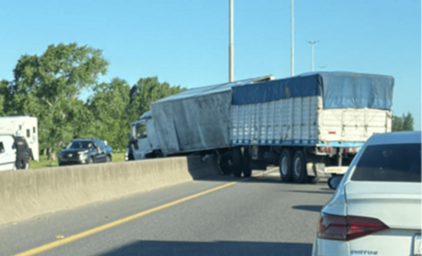 Un camión de gran porte protagonizó un impactante siniestro vial este miércoles cerca de las 18 horas, al perder el control, cruzarse de carril y terminar montado sobre la barrera central de la Autopista Buenos Aires–La Plata, a la altura de Quilmes.
