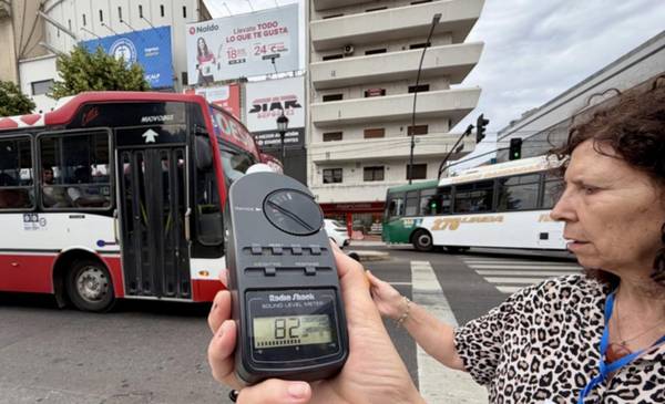 Según el monitoreo sonoro realizado por alumnos y docentes de la Licenciatura en Fonoaudiología de la Facultad de Ciencias de la Salud de la UCALP, en las inmediaciones de Plaza San Martín la intensidad del ruido promedia los 80 decibeles.
