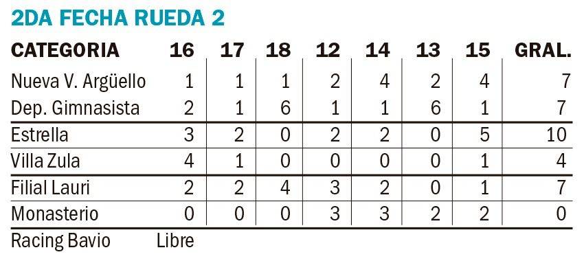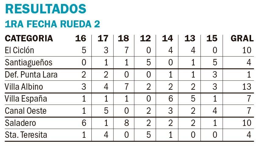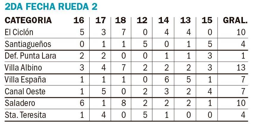 En lo que respecta en la Liguilla 2, Villa Albino, el histórico club de Ensenada que sigue escribiendo páginas en el fútbol infantil, se subió a lo más alto de la tabla por institución, después de dos jornadas altamente positivas, sobre todo la del sábado, en la que cosechó trece unidades en su visita a Defensores de Punta Lara (3-1 en el global).