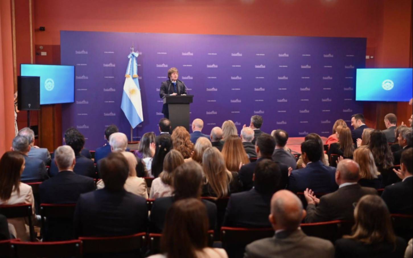 El acto tuvo lugar en el Salón Blanco de la Casa Rosada, ante la plana mayor del Gobierno nacional.