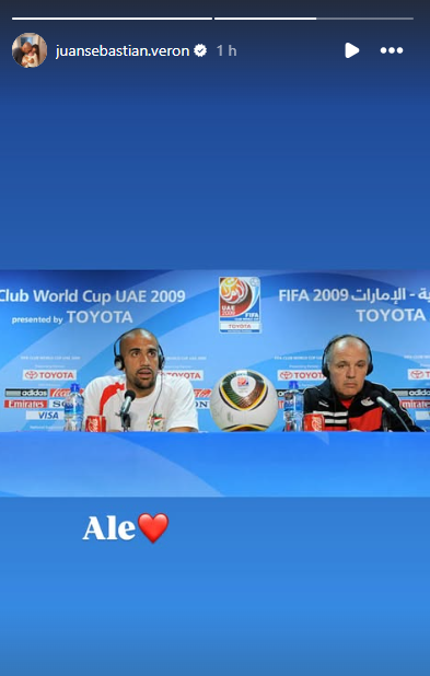 En esa misma línea, Juan Sebastián Verón, símbolo y presidente del club, también compartió su recuerdo personal en redes sociales. Publicó una imagen junto a Sabella durante una conferencia en el Mundial de Clubes 2009, acompañada de un breve y sentido mensaje: “Ale”, junto a un corazón.