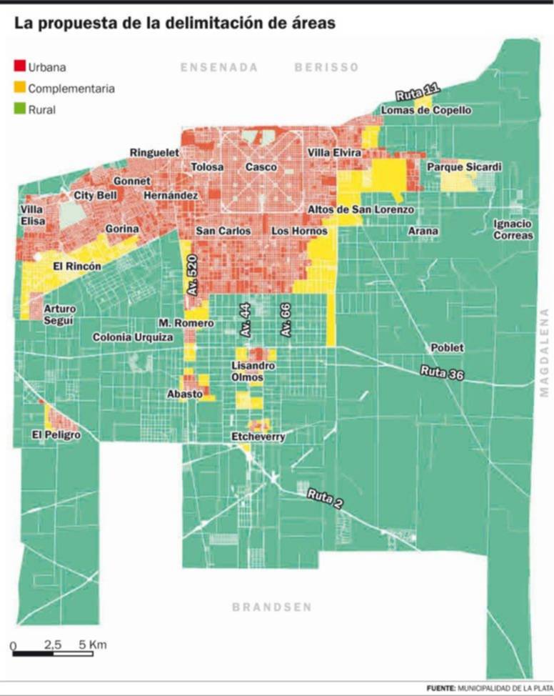 El expediente girado por el gobierno de Julio Alak establece delimitaciones al área urbana, una zona para el desarrollo de viviendas en función de la ley de Hábitat y la protección del cinturón hortícola y las zonas de producción industrial.