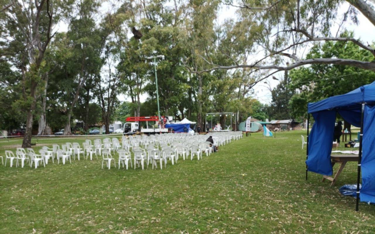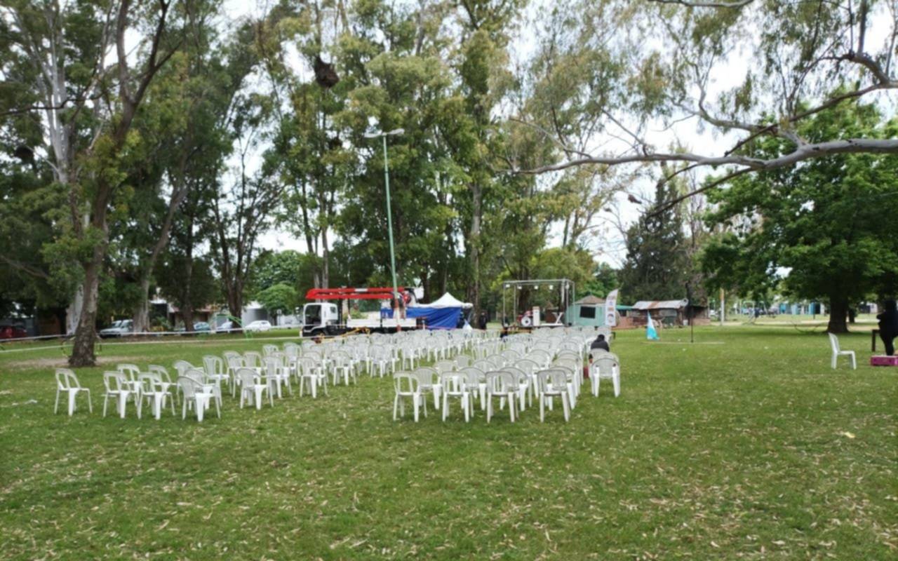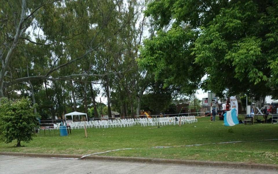 El acto ocurre en las inmediaciones de 120 entre 71 y 72 sobre la rambla. Allí, en las últimas horas se montó un gacebo, un escenario, equipos de sonido, instrumentos musicales y hasta un centenar de sillas plásticas. Además, se delimitó el uso del espacio verde a los vecinos con una cinta.