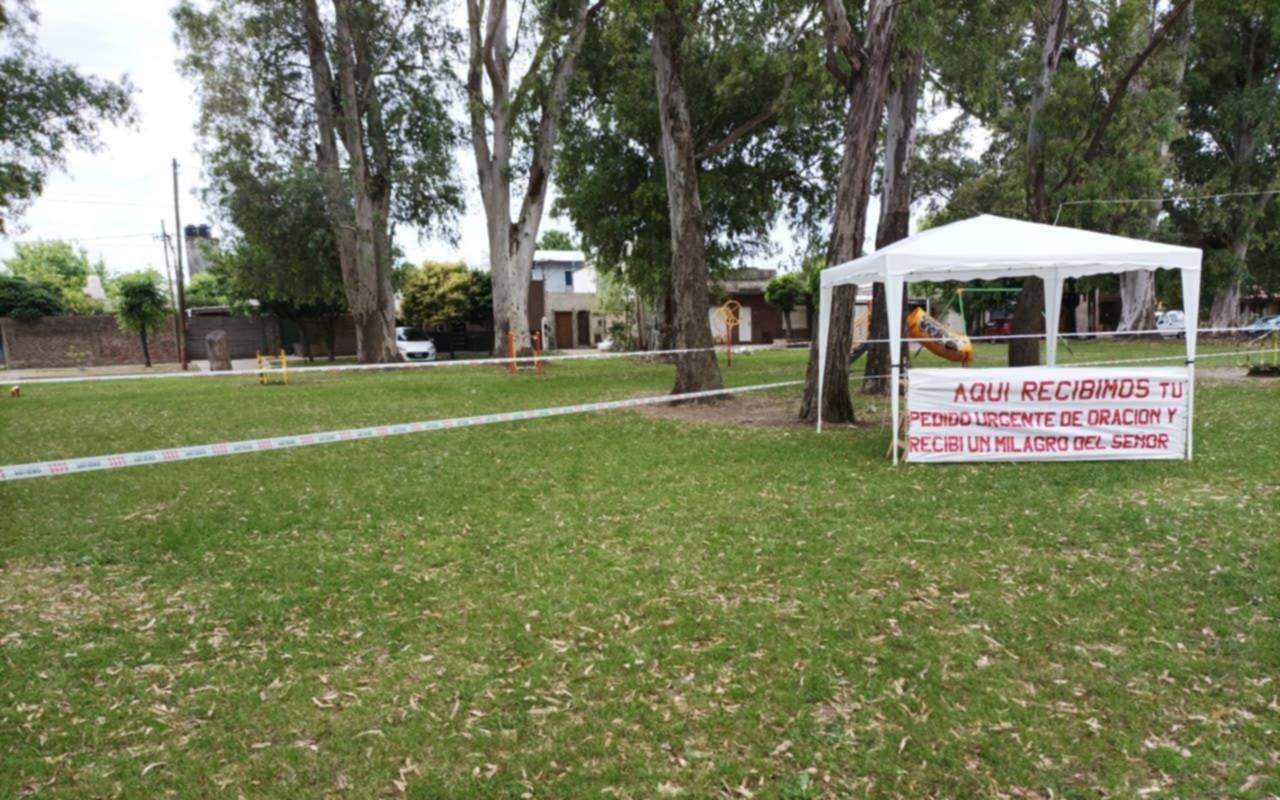 Este jueves por la tarde, un grupo de vecinos de Villa Elvira expresaron su malestar por la ocupación del espacio público, donde según denunciaron se montó una estructura perteneciente a una iglesia evangélica sin el permiso municipal.