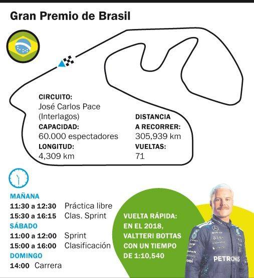 La actividad para el Gran Premio de Brasil comenzará mañana donde se realizará el único ensayo libre, porque después tendrá lugar la clasificación para Sprint. Esta carrera a 19 vueltas se disputará el sábado, desde las 11; mientras que a partir de las 15 se realizará la Qualy para la competencia estelar del domingo donde los semáforos en verde se pondrán cuando las aguas del reloj marquen las 14 (hora argentina).