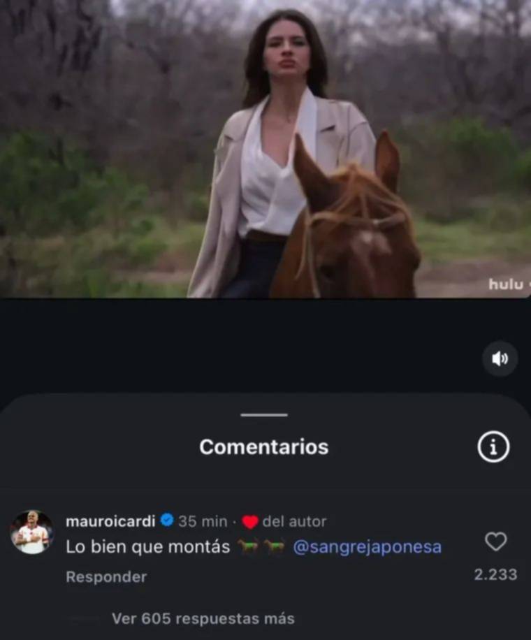 La foto despertó miles de reacciones y entre ellas estaba la de Mauro Icardi: "Lo bien que montás", escribió el goleador junto a un emoji de un caballo de carreras.