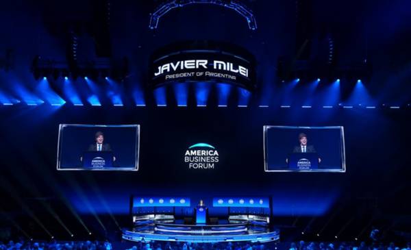 Javier Milei al hablar en el America Business Forum / ap