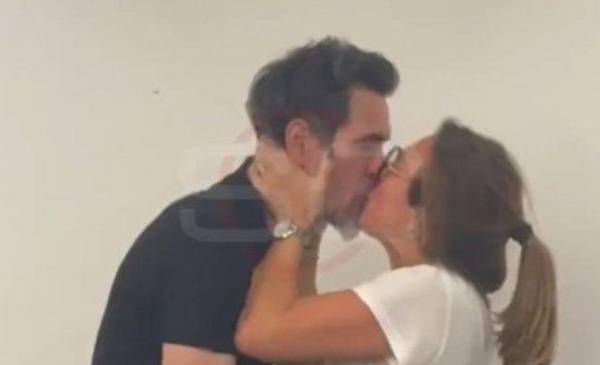 El beso de Eduardo Domínguez con su esposa Brenda Bianchi
