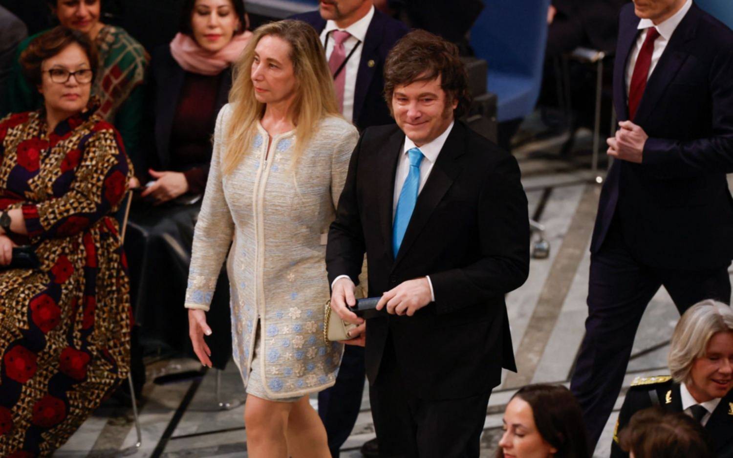 El presidente Javier Milei asistía hoy a la ceremonia de entrega del Premio Nobel de la Paz, en Oslo, a la líder opositora venezolana María Corina Machado, quien finalmente no está presente en el acto y fue su hija quien recibió la distinción.
