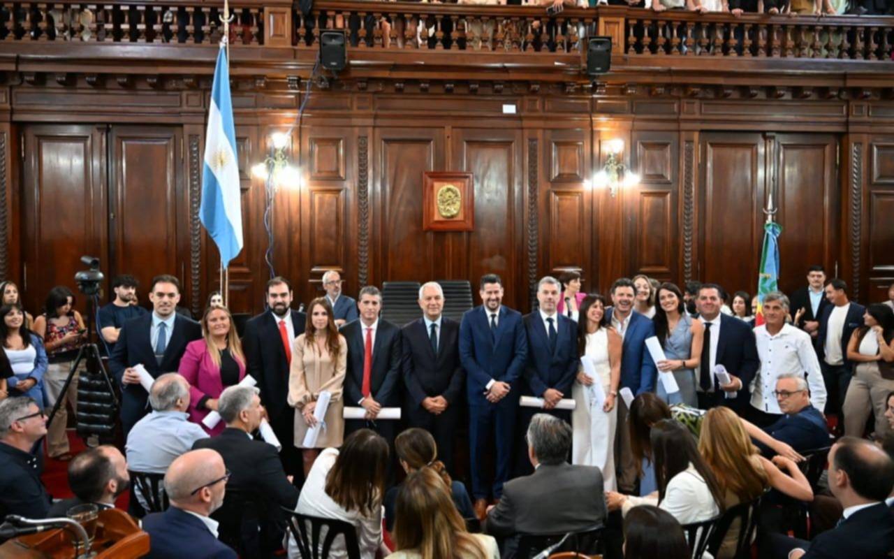 Con invitados especiales, el hemiciclo se reacomodó agrupando a los 12 miembros del bloque oficialista a la derecha del estrado y los siete de La Libertad Avanza, a la izquierda. En tanto, en el centro se ubicaron las bancas del bloque del PRO-JxC y los monobloques de PRO-Vecinal, Asap Nueva Generación y UCR.