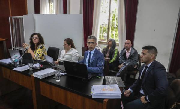 El fiscal Mariano Sibuet, junto con los abogados Horacio Samamé, Sebastián Chouela y Belén Chapur, representan a Osvaldo Martínez. Cerrada la etapa probatoria, el juicio ingresa hoy en su etapa de alegatos.