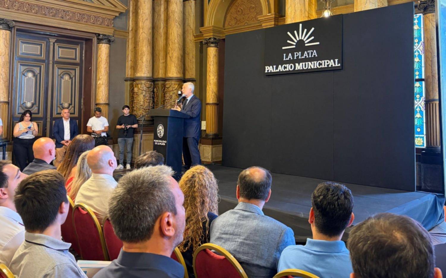El intendente de La Plata, Julio Alak encabeza este viernes el acto donde presenta el Plan de Seguridad Municipal 2026. El evento, con fuerte presencia de funcionarios locales y provinciales, se lleva a cabo en el Salón Dorado del Palacio Municipal.