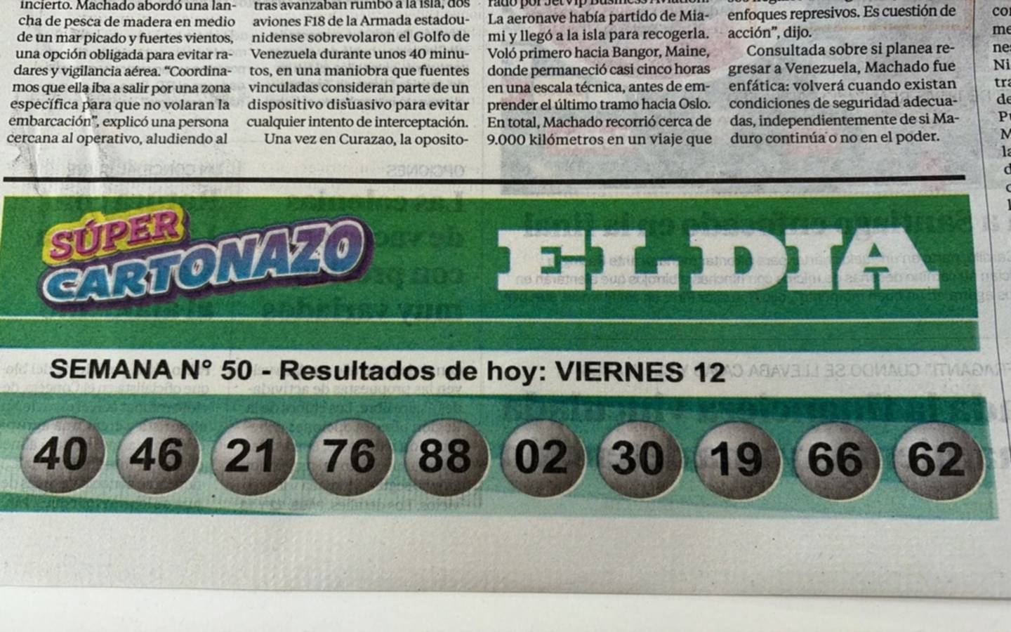 El Súper Cartonazo del diario EL DIA ya se juega por $4.000.000 y la chance de ganar $300.000 con la línea. Desde hoy viernes y hasta el martes en la edición impresa de papel salen los números de cada jornada.