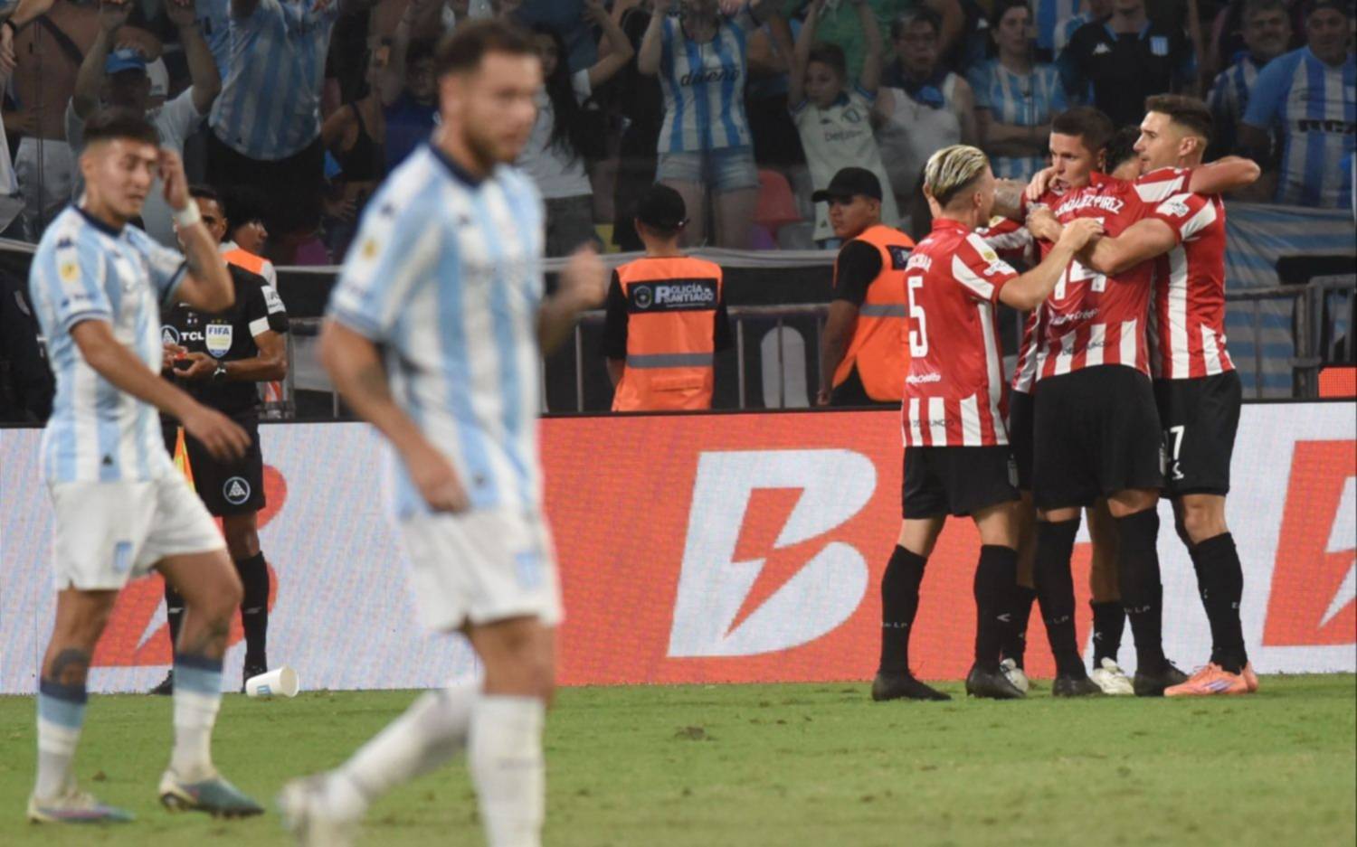 Con una dosis mayor de precisión en los últimos metros del campo Estudiantes podría haber sacado ventaja en el resultado. Si bien el trámite fue duro y parejo, el Pincha mostró mayor lucidez e inventiva con Tiago Palacios y Cristian Medina. El gran reproche para los de Domínguez fueron las evitables amonestaciones que recibieron Gómez y Guido Carrillo. Fernando Muslera entró muy poco en acción y Cambeses desvió un tiró que llevaba destino de red de Guido Carrillo. Con una escenografía matizada por la pasión multitudinaria de los hinchas de Estudiantes y de Racing, el equipo de Eduardo Domínguez saltó al campo de juego del estadio Madre de Ciudades de Santiago del Estero buscando escribir otra página gloriosa de su rica historia.