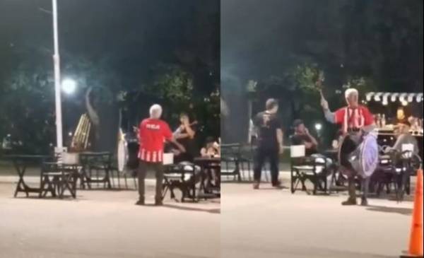 En la intersección de Iriondo y 9 de Julio, en la localidad santafesina de San Justo, el hombre golpeaba el bombo y expresaba su felicidad con cánticos mientras los automovilistas que pasaban por allí lo apoyaban con bocinazos, sumándose a su alegría.