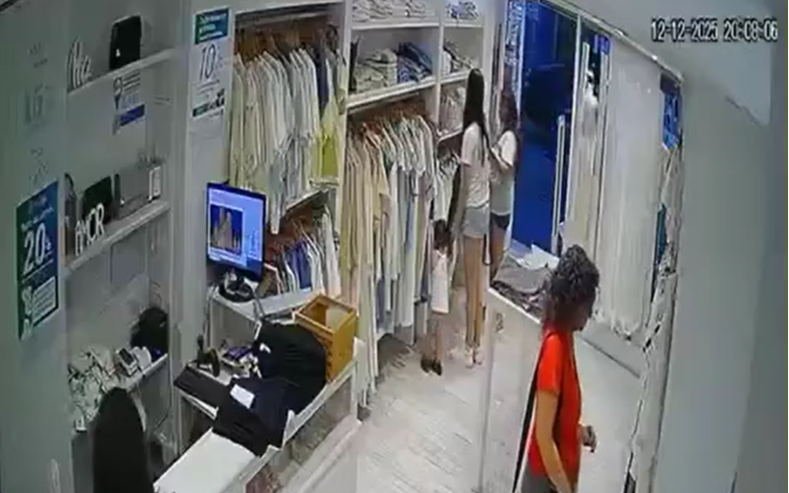 Según las imágenes difundidas, el accionar fue coordinado: el pasado viernes, ingresaron varias mujeres al local que fingieron ser clientas, tomaron distintas prendas y distrajeron a la vendedora en la zona de atención.