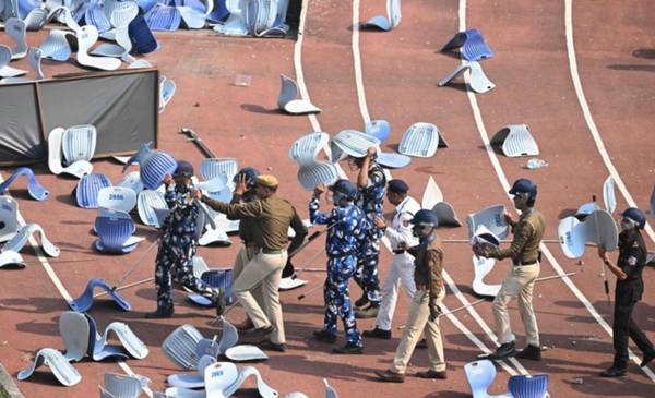 Sin embargo, horas después, miles de seguidores con camisetas del jugador reunidos en el estadio Salt Lake de Calcuta se sintieron estafados por la brevedad del acto y se desataron los incidentes.