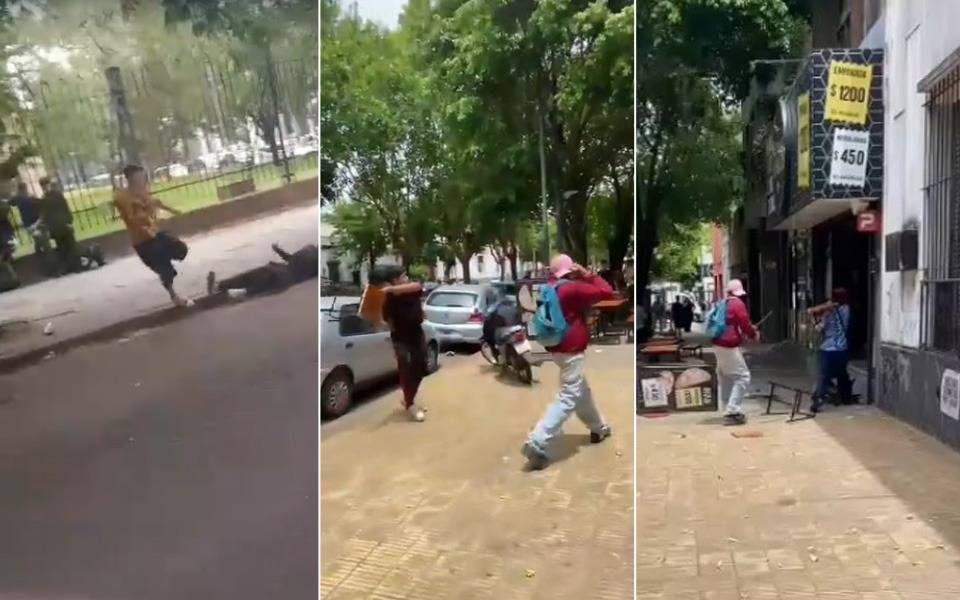 Según las imágenes que circulan en redes y a las que pudo acceder este medio, los alumnos cruzaron sillazos y provocaron daños en el mobiliario del comercio, luego de arrojar sillas y bancos, mientras otros clientes y transeúntes se alejaban para resguardar su seguridad. La escena captada por testigos muestra momentos de enorme violencia dentro y fuera del local.