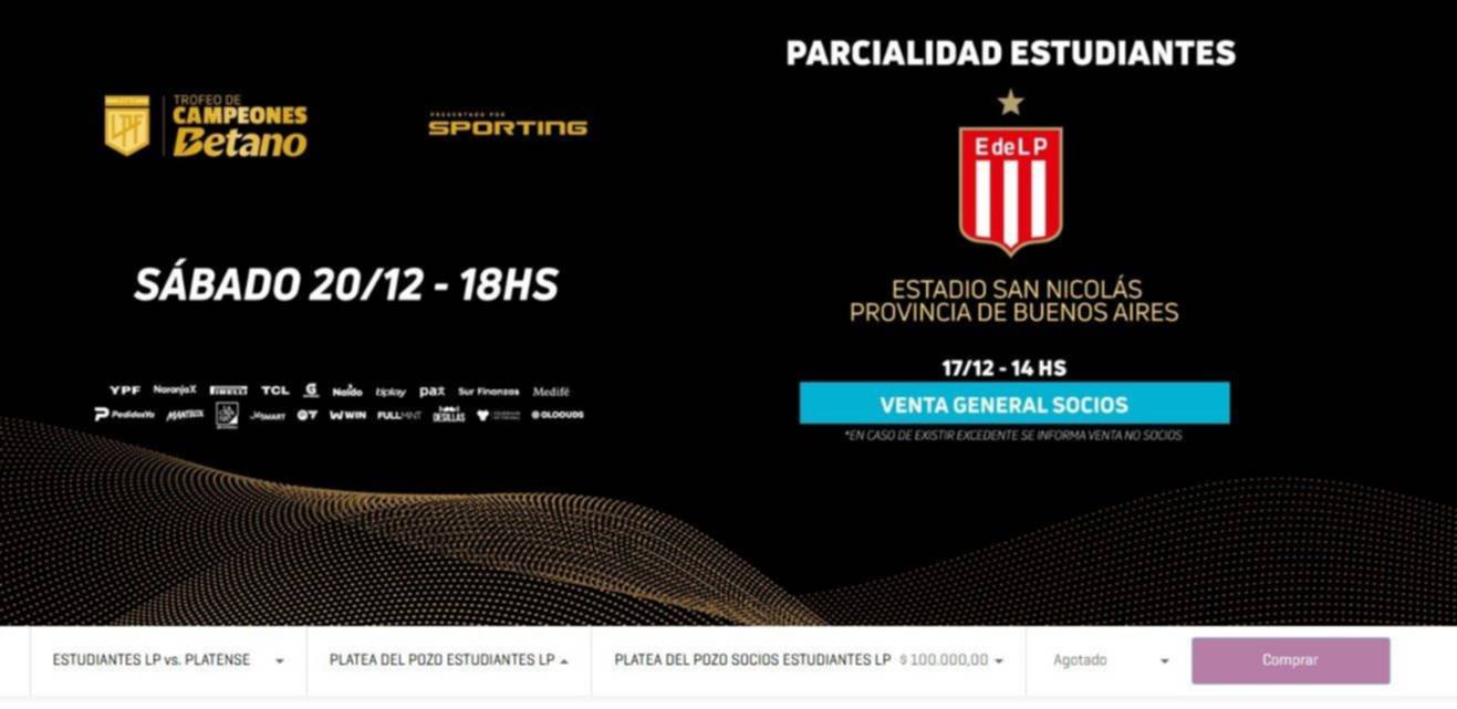 La Liga Profesional de Fútbol (LPF) dio a conocer detalles acerca de la venta de entradas para la final y confirmó que los hinchas de Estudiantes podrán adquirirla a través de Deportick.