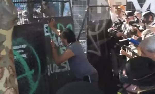 Los manifestantes voltearon las vallas y se enfrentaron a los empujones con los efectivos de la Policía Federal y Gendarmería que estaban dispuestos en el lugar para hacer cumplir el protocolo antipiquetes.