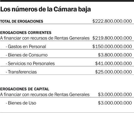 Pero hay más. Se suman 210 agentes de planta permanente sin estabilidad y 359 empleados temporarios. La dotación se completa con los 92 diputados y 10 funcionarios de ley (secretarios y prosecretarios, entre otros). En total, Diputados gasta para pagar sueldos 150 mil millones de pesos, el 67,3 por ciento del total de los recursos.