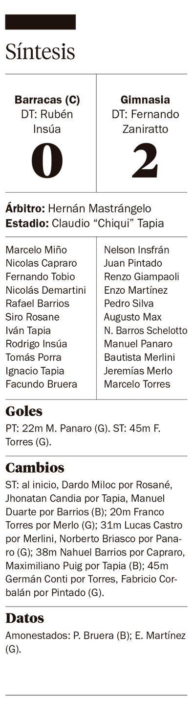 Se planchó demasiado Gimnasia en el segundo tiempo. Perdió la pelota Bautista Merlini, no tuvo tanto peso por afuera (ya con Franco Torres por Merlo) y Marcelo Torres quedó muy descolgado del resto del equipo. Un centro de Ignacio Tapia demasiado fuerte acercó peligro al arco del Mono Insfrán.