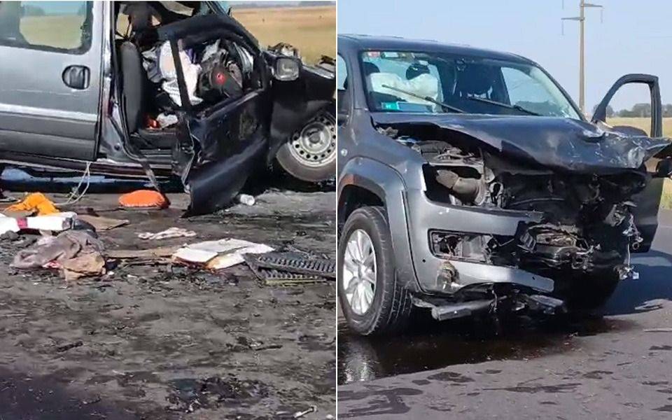 El impacto tuvo lugar el sábado a la mañana pasando el kilómetro 225 de la ruta 3. Aún se investigan las causas del choque entre la Kangoo y la Volkswagen Amarok, que iban por carriles contrarios.