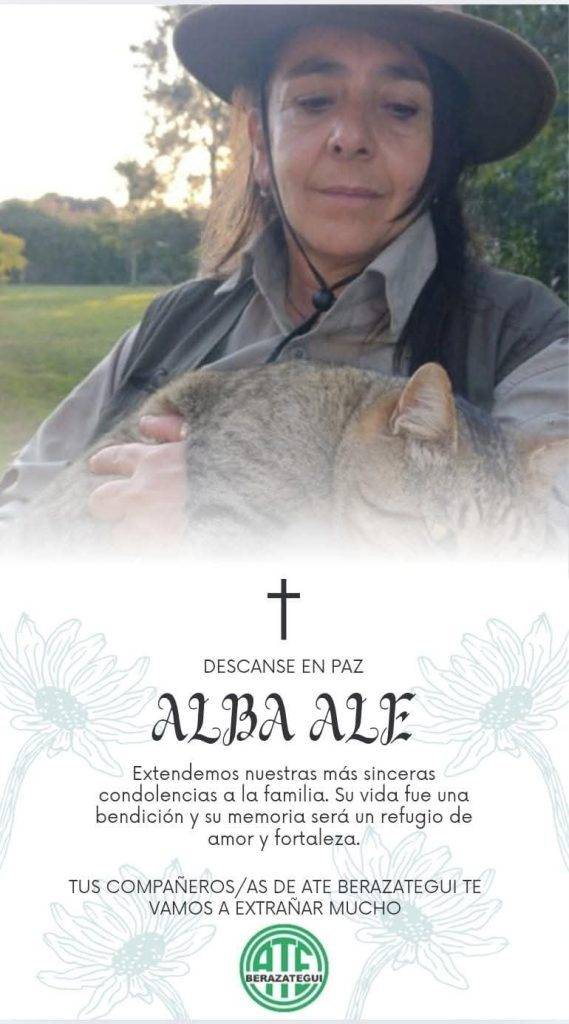 Desde el gremio la despidieron con un mensaje cargado de emoción: “Vuela alto compañera Alba, no es un adiós, sino un hasta pronto”, expresaron, al resaltar su calidez humana, su compromiso militante y la huella que dejó en quienes compartieron su camino.