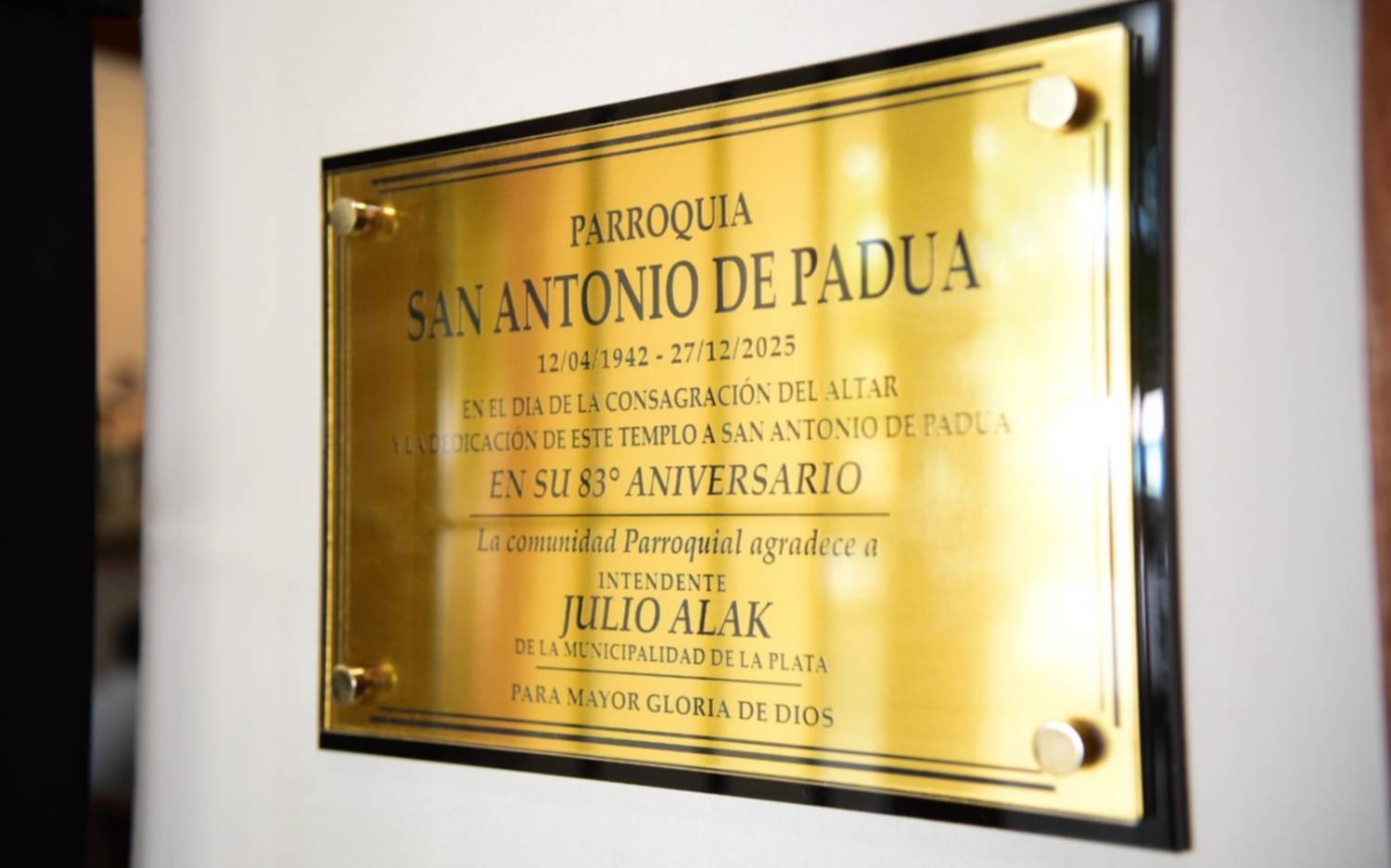 El jefe comunal de La Plata, Julio Alak, participó de la ceremonia de consagración del altar del templo de la Parroquia San Antonio de Padua por parte del arzobispo de la ciudad, monseñor Gustavo Carrara.