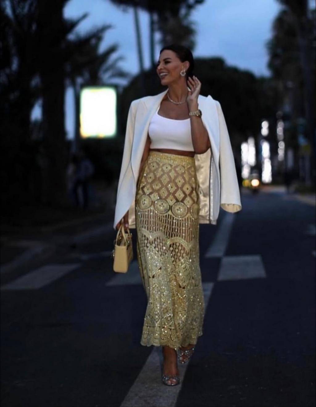 Los colores tienen un rol protagónico y cargado de significado. El blanco es el gran clásico de Año Nuevo: representa comienzos limpios, claridad y paz interior. Vestidos largos, conjuntos livianos o tops blancos combinados con accesorios metálicos son una elección recurrente. El dorado y el plateado simbolizan abundancia, éxito y celebración, ideales para quienes buscan atraer prosperidad. El rojo se asocia al amor y la pasión, mientras que el amarillo convoca alegría y optimismo. Cada tono cuenta una historia y muchas mujeres eligen su outfit según el deseo que quieren potenciar.
