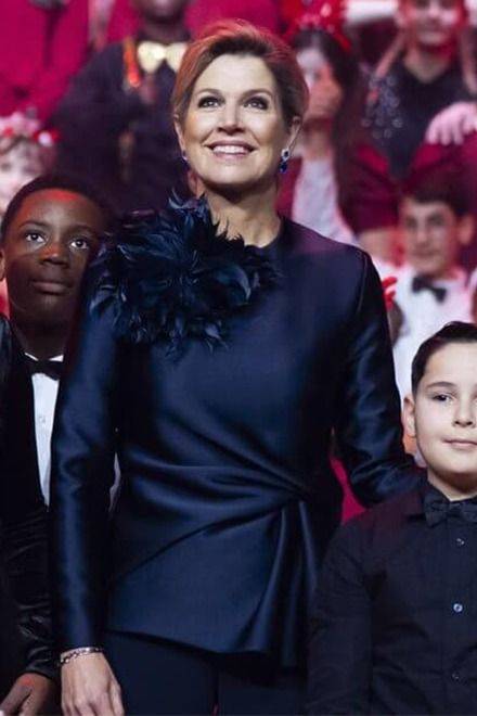 En la gala de la música Máxima llevó un broche de Natan combinado con la blusa