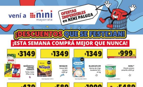 Nini (25 y 520) te espera para aprovechar todas sus ofertas y promociones en diversos productos y llevarte todo lo que necesitás. De viernes a domingo vas a encontrar precios mayoristas y grandes descuentos. Además en NINI vas a ahorrar todos los días.